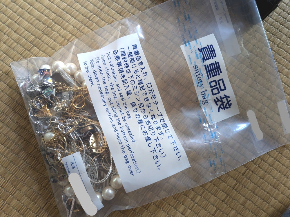 アクセサリーが入っていたケースは持ち帰れないのでと、それぞれケースから出して、こんな風に、すべてひとまとめでナイロン袋に入れられる。